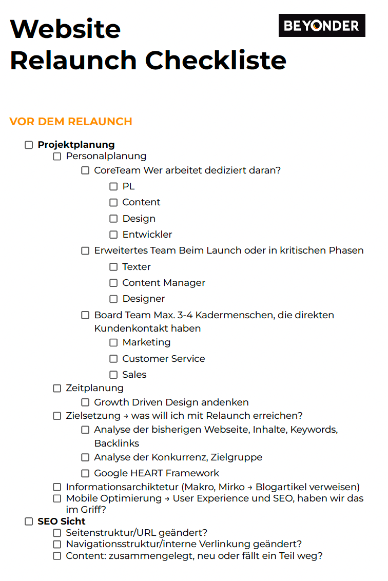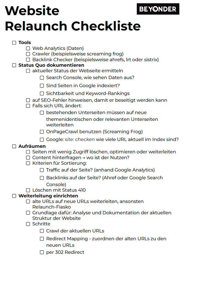 Stelle dir, bevor die neue Website online stellst, folgende Fragen: