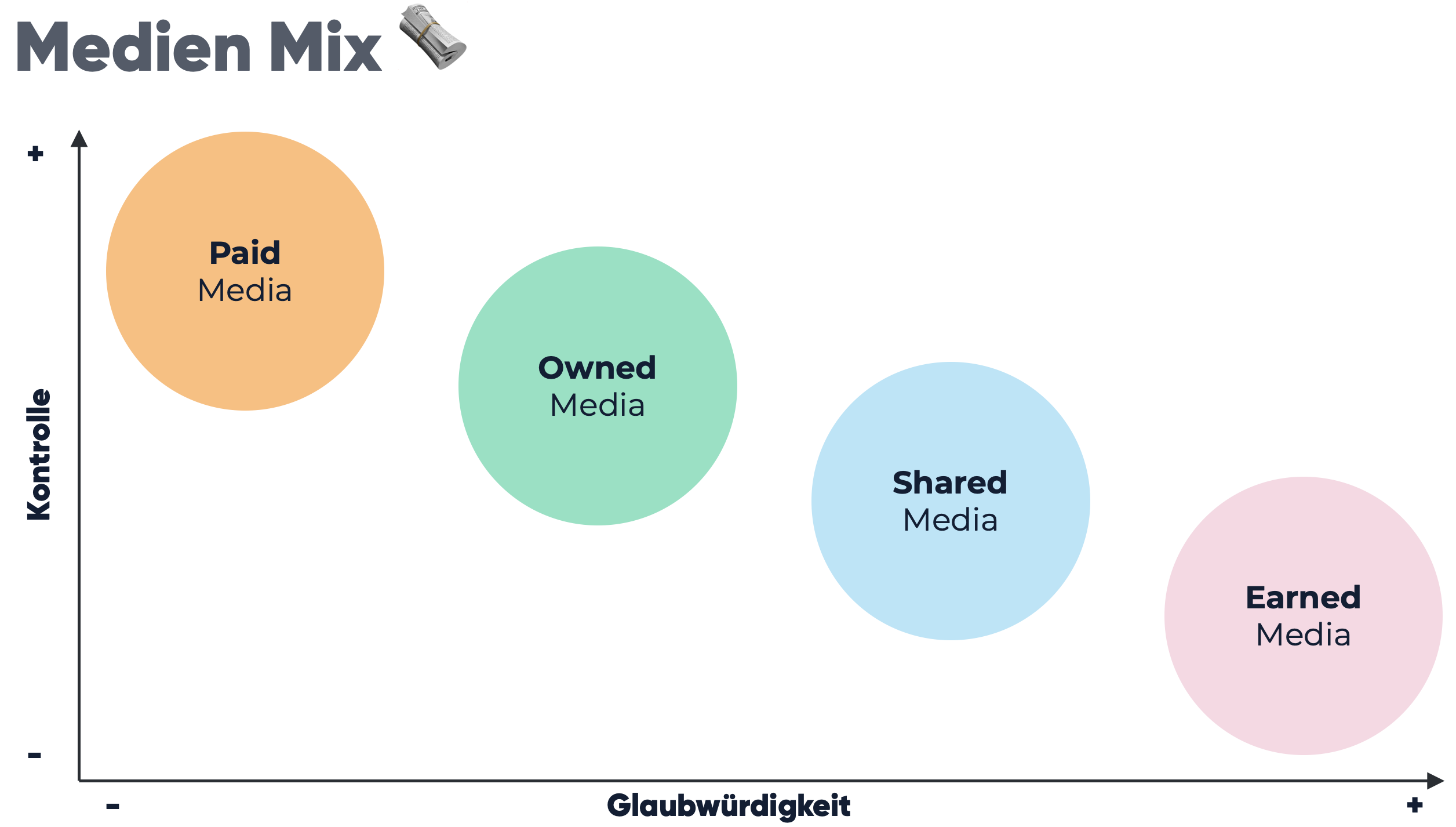 Paid Media lässt sich von den vier Möglichkeiten am besten kontrollieren, bietet dagegen aber die niedrigste Glaubwürdigkeit. In diesem Zusammenspiel folgt Owned Media, Shared Media und Earned Media.