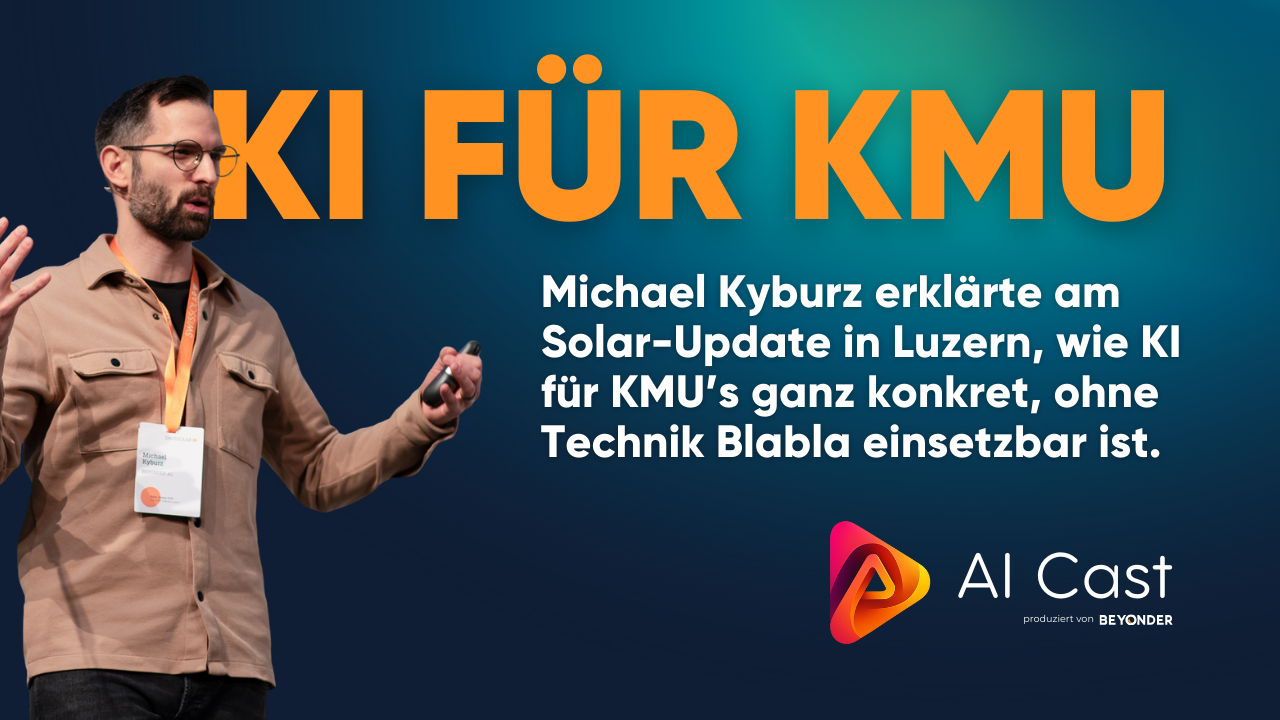 KI im Arbeitsalltag? Ja, bitte! Michael Kyburz zeigt in seinem Vortrag bei Swiss Solar, wie Schweizer KMU Künstliche Intelligenz ganz pragmatisch einsetzen können, ohne Fachchinesisch, dafür mit viel Praxis.